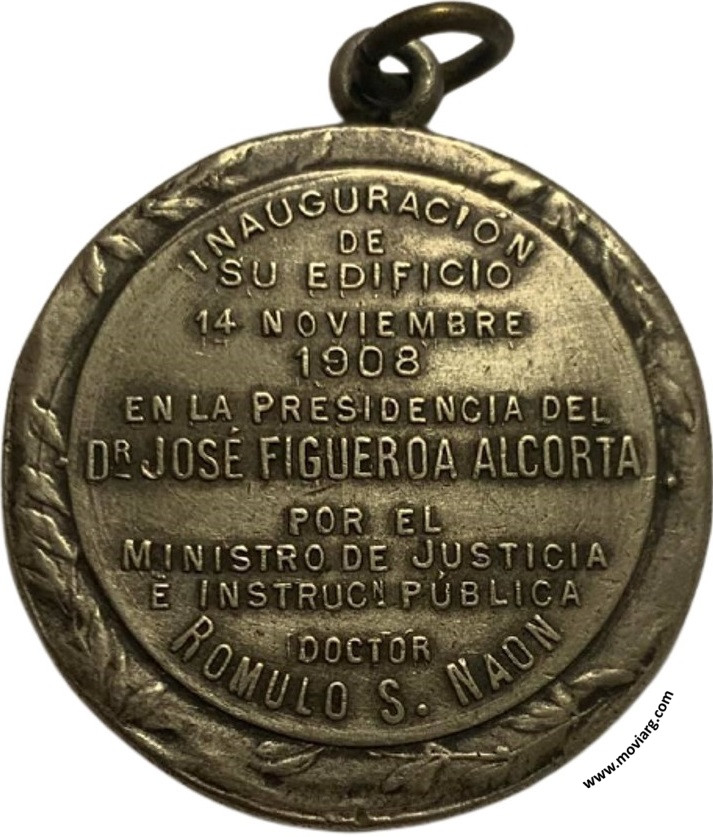 Anverso: ESCUELA NORMAL MIXTA / DEL / AZUL / FUNDADA / EL 26 DE JULIO 1887 Reverso: INAUGURACIÓN / DE / SU EDIFICIO / 14 NOVIEMBRE / 1908 / EN LA PRESIDENCIA DEL / DR. JOSÉ FIGUEROA ALCORTA / POR EL / MINISTRO DE JUSTICIA / É INSTRUCN. PÚBLICA / DOCTOR / ROMULO S. NAON Referencia: | |