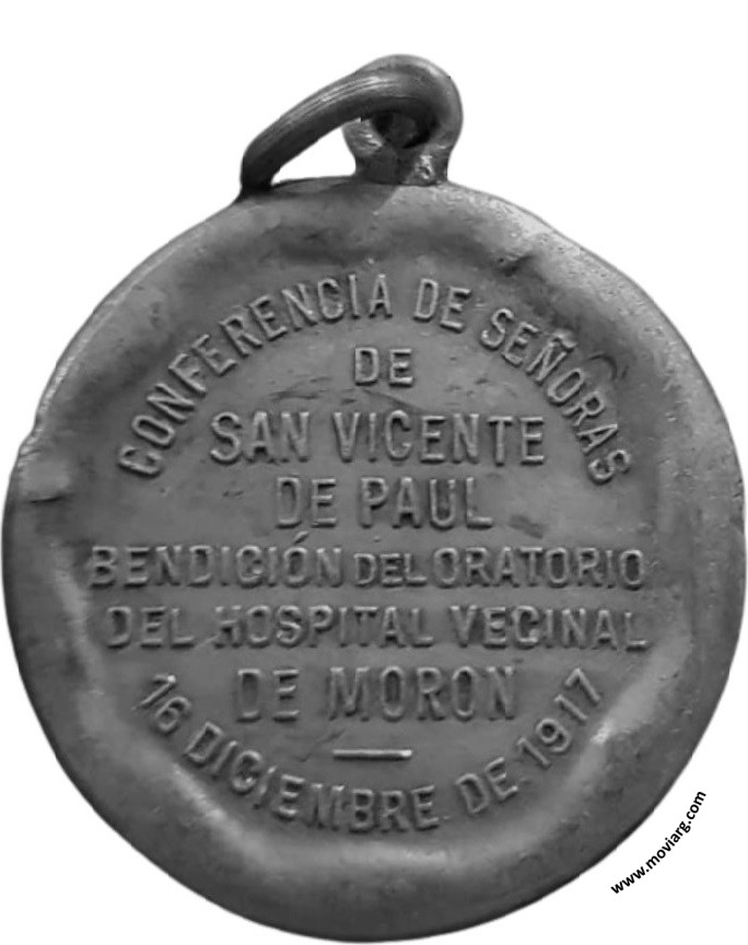 fb - R.B. (pieza híbrida) Anverso: Firma: CONST. ROSSIReverso: CONFERENCIA DE SEÑORAS / DE / SAN VICENTE / DE PAUL / BENDICIÓN DEL ORATORIO / DEL HOSPITAL VECINAL / DE MORON / 16 DICIEMBRE DE 1917 Referencia: | |