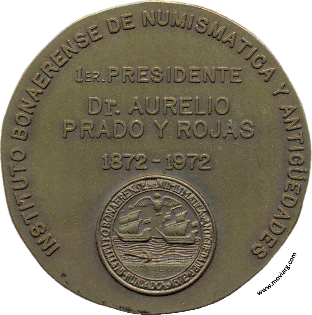 Anverso: PATRIA / ATQUE SAPIENTIA. Firma: GOTTUZZO Y PIANA Reverso: INSTITUTO BONAERENSE DE NUMISMATICA Y ANTIGÜEDADES / 1ER. PRESIDENTE / DR. AURELIO / PRADO Y ROJAS / 1872 - 1972. Campo: INSTITUTO BONAERENSE DE NUMISMATICA Y ANTIGÜEDADES / FUNDADO EN 1872 / SEGUNDA EPOCA / 1934 Referencia: | |