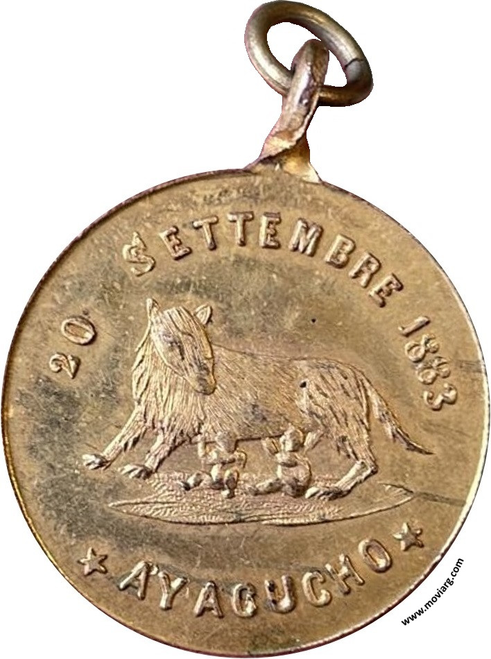 Anverso: 20 SETTEMBRE 1883 / AYACUCHO Reverso: SOCIETÁ ITALIANA / UNIONE E BENEVOLENZA / COLLOCAZIONE / DELLA PIETRA / FONDAMENTALE Referencia: | |