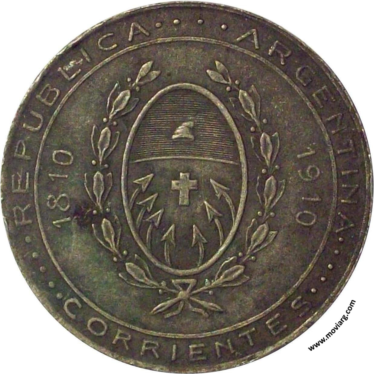 Anverso: REPÚBLICA ARGENTINA / CORRIENTES / 1810 / 1910 Reverso: CONMEMORACION / EXPOSICION CENTENARIO Referencia: | |