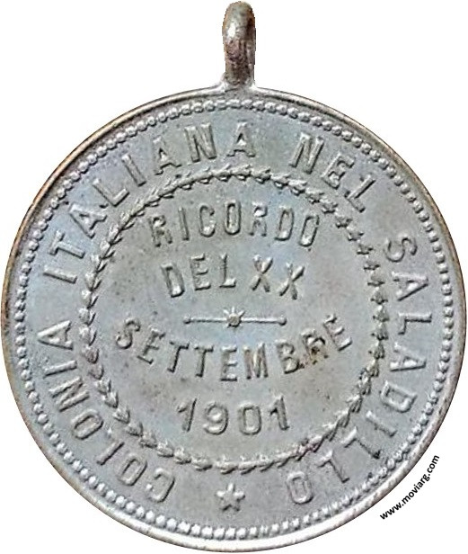 Anverso: Reverso: COLONIA ITALIANA NEL SALADILLO / RICORDO / DEL XX / SETTEMBRE / 1901 Referencia: | |