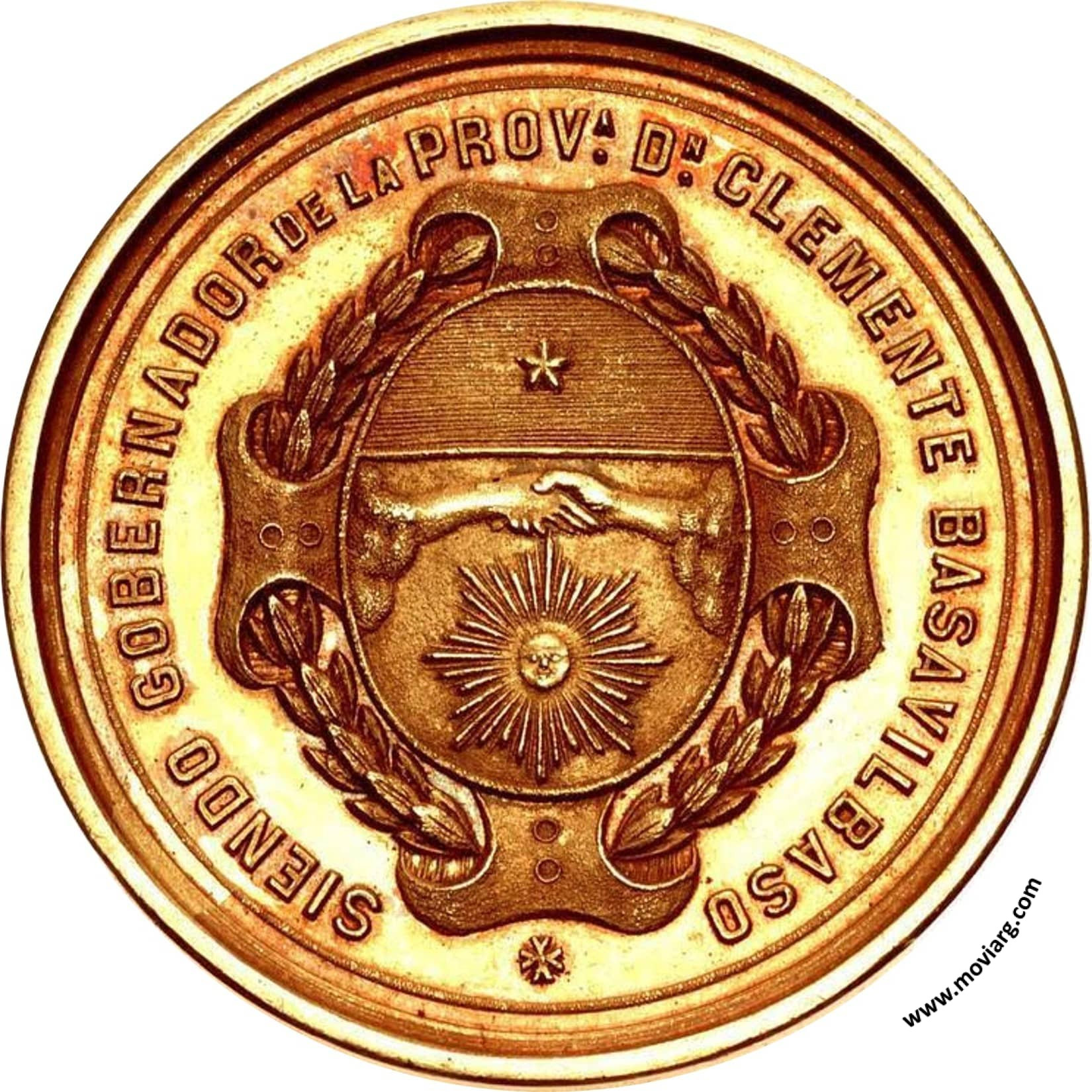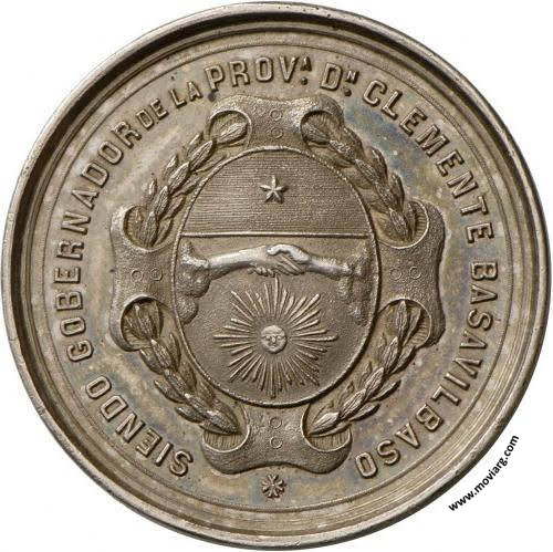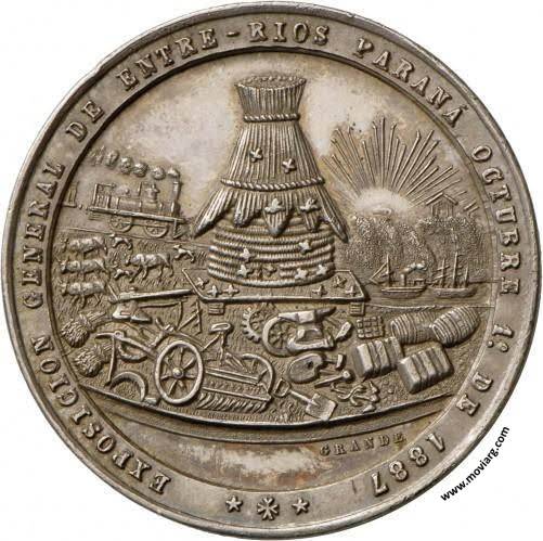 Anverso: EXPOSICION GENERAL DE ENTRE-RIOS PARANÁ OCTUBRE 1° DE 1887. Firma: GRANDE Reverso: SIENDO GOBERNADOR DE LA PROVA. DN. CLEMENTE BASAVILBASO Referencia: ROSA-379 FERRARI-135 (RG) | |