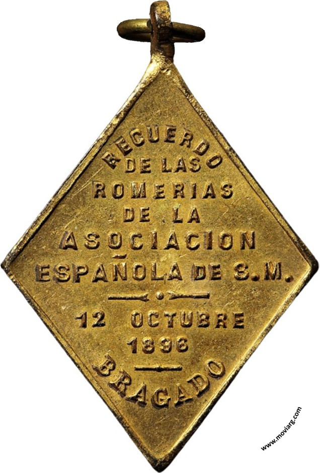 Anverso: Reverso: RECUERDO / DE LAS / ROMERIAS / DE LA / ASOCIACION / ESPAÑOLA DE S.M. / 12 OCTUBRE / 1896 / BRAGADO Referencia: | |