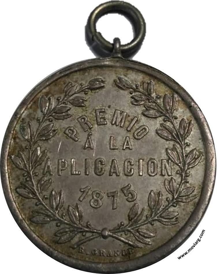 Anverso: APLICACION / INTELIGENCIA / ESTUDIO Reverso: PREMIO / Á LA / APLICACION / 1875. Firma: R. GRANDE Referencia: | |