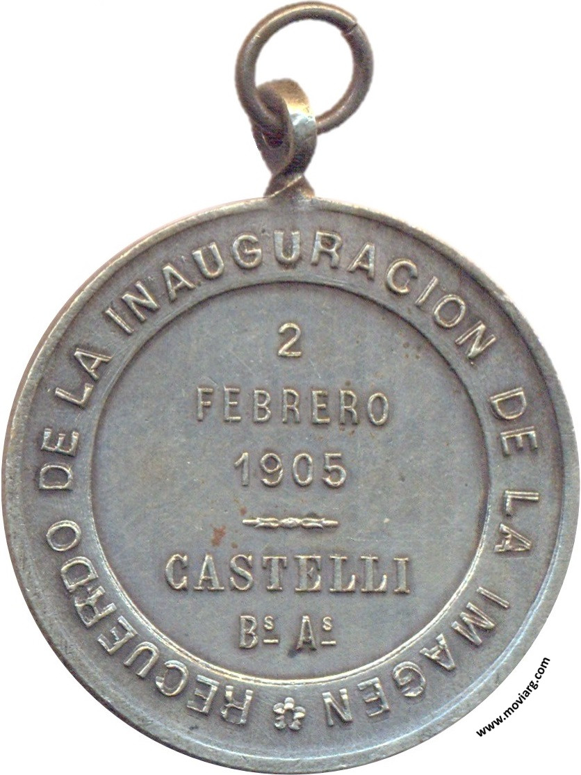 Anverso: NUESTRA SEÑORA DEL ROSARIO ROGAD POR NOSOTROS. Firma: BELLAGAMBA Y ROSSI Reverso: RECUERDO DE LA INAUGURACION DE LA IMAGEN / 2 / FEBRERO / 1905 / CASTELLI / BS. AS. Referencia: | |