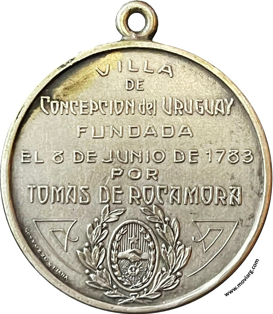 Anverso: CIUDAD DE CONCEPCION DEL URUGUAY / 1826 - AGOSTO 26 - 1926 Reverso: VILLA / DE / CONCEPCION DEL URUGUAY / FUNDADA / EL 8 DE JUNIO DE 1783 / POR / TOMAS DE ROCAMORA. Firma: GOTTUZZO Y PIANA Referencia: | |