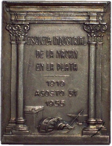 Anverso: ESCUELA INDUSTRIAL / DE LA NACIÓN / EN LA PLATA / 1910 / AGOSTO 31 / 1935 Reverso: INDUSTRIA / ES PROGRESO / A BUENOS TECNICOS / PATRIA GRANDE. Firma: GOTTUZZO Y PIANA Canto: Liso. 900 Referencia: | |