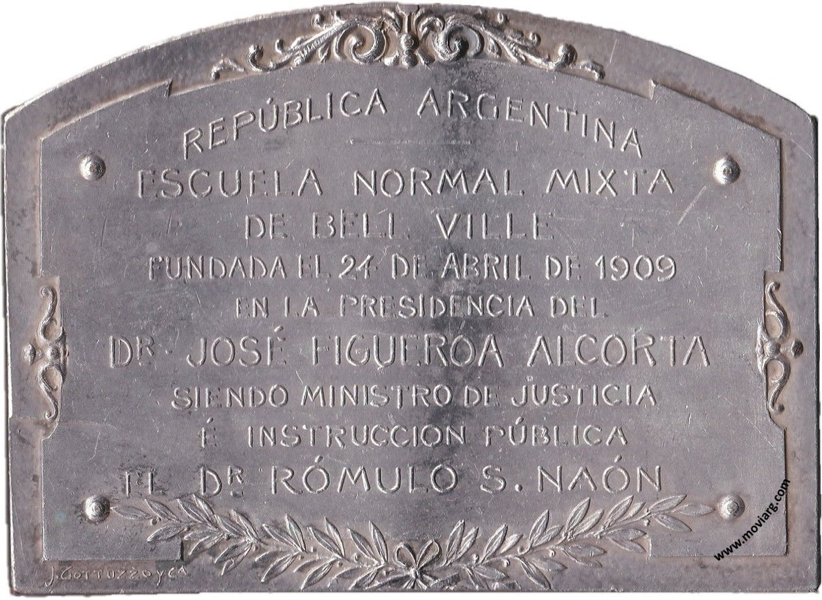 Anverso: Campo: NO HAY REPU / BLICA SIN PUE / BLO EDUCA / DO Reverso: REPÚBLICA ARGENTINA / ESCUELA NORMAL MIXTA / DE BELL VILLE / FUNDADA EL 24 DE ABRIL DE 1909 / EN LA PRESIDENCIA DEL / DR. JOSÉ FIGUEROA ALCORTA / SIENDO MINISTRO DE JUSTICIA / É INSTRUCCION PÚBLICA / EL DR. RÓMULO S. NAÓN. Firma: J. GOTTUZZO Y CA. Referencia: | |