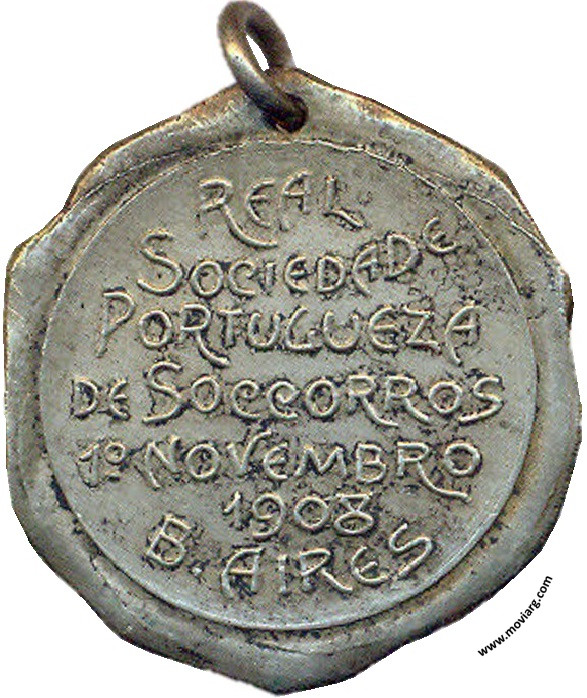 Anverso: Reverso: REAL / SOCIEDADE / PORTUGUEZA / DE SOCCORROS / 1° NOVEMBRO / 1908 / B. AIRES Referencia: | |