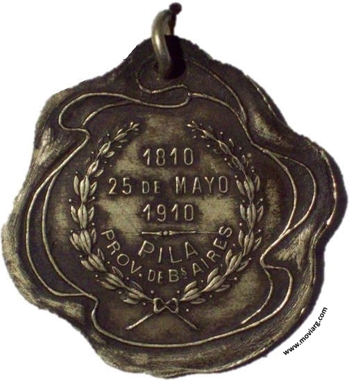 Anverso: SEAN ETERNOS LOS LAURELES QUE SUPIMOS CONSEGUIR Reverso: 1810 / 25 DE MAYO / 1910 / PILA / PROV. DE BS. AIRES Referencia: | |