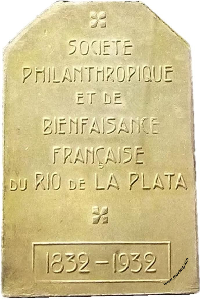 Anverso: Firma: J. SPRENGER Reverso: SOCIETE / PHILANTHROPIQUE / ET DE / BIENFAISANCE / FRANÇAISE / DU RIO DE LA PLATA / 1832 - 1932 Referencia: | |