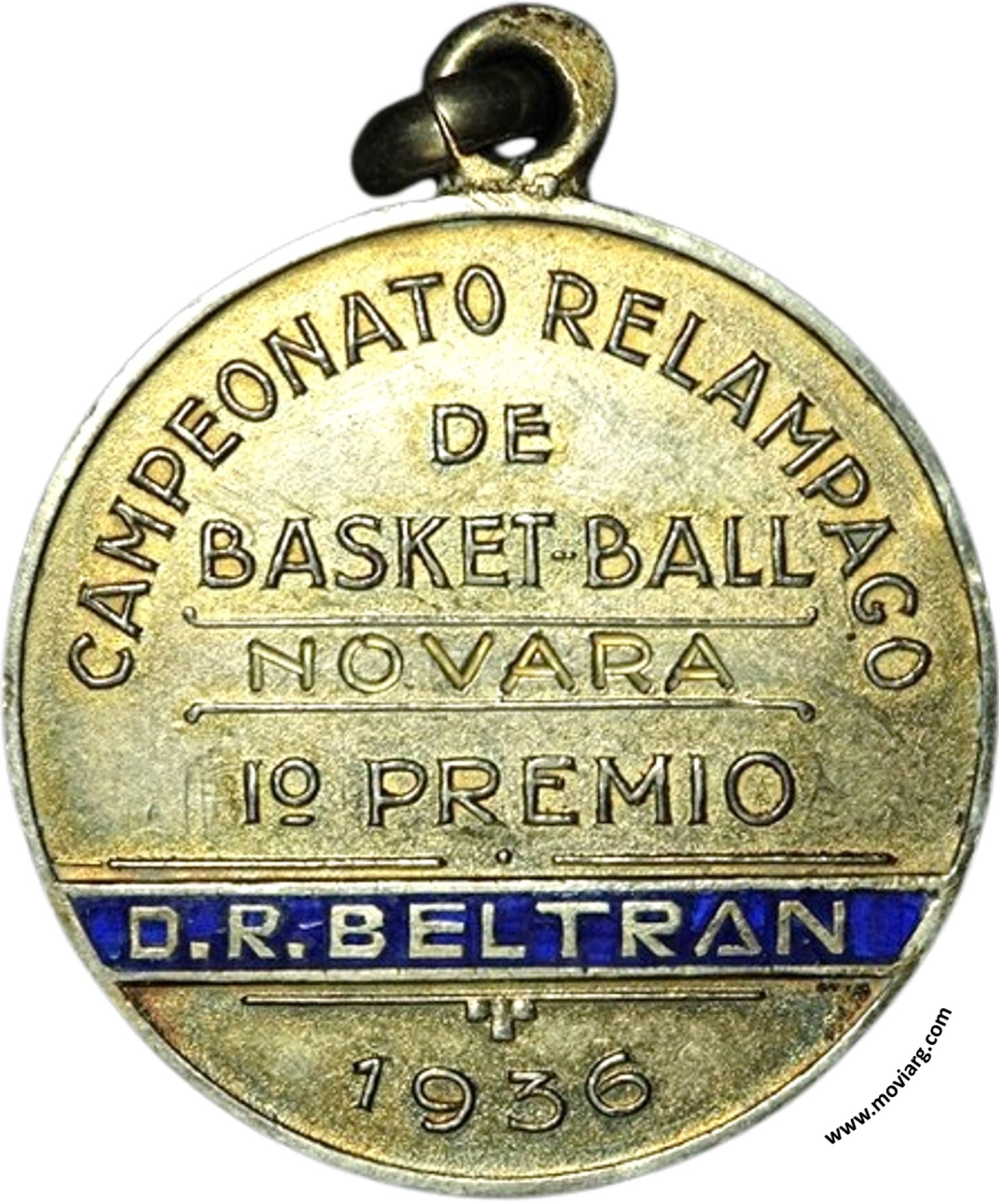 Anverso: RACING CLUB / AVELLANEDA. Campo: RACING. Anilla: [ 900 ] Reverso: CAMPEONATO RELAMPAGO / DE / BASKET-BALL / [ NOVARA ] / I° PREMIO / [ D. R. BELTRAN ] / 1936 Referencia: | |