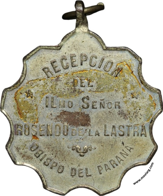 Anverso: 28 DE MAYO 1898. Firma: ORZALI B. Y C. Reverso: RECEPCION / DEL / ILMO. SEÑOR / ROSENDO DE LA LASTRA / OBISPO DEL PARANÁ Referencia: | |