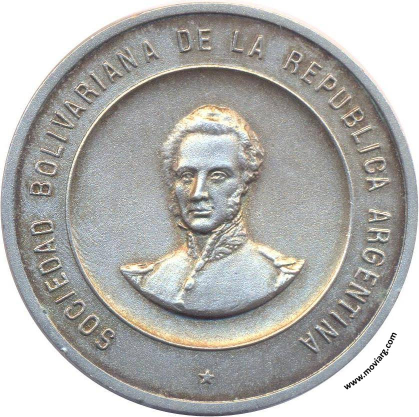 Anverso: SOCIEDAD BOLIVARIANA DE LA REPUBLICA ARGENTINA Reverso: HOMENAJE / AL / GENERAL / DANIEL F. O'LEARY / EDECÁN Y PRIMER BIÓGRAFO / DEL LIBERTADOR BOLIVAR / EN EL / CENTENARIO DE SU MUERTE / 1854 / 24 DE FEBRERO / 1954. Exergo: INDUSTRIA / ARGENTINA / 800 Referencia: | |