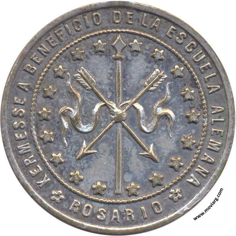 Anverso: KIRMES ZU GUNSTEN DER DEUTSCHEN SCHULE ROSARIO / 1902 Reverso: KERMESSE A BENEFICIO DE LA ESCUELA ALEMANA / ROSARIO Referencia: | |