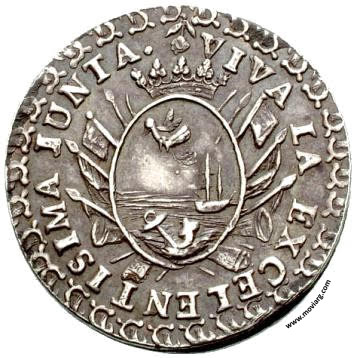 Anverso: VIVA LA EXCELENTISIMA JUNTA Reverso: DE LA CAPITAL DE BUENOS AIRES. ANO D 1811 Referencia: BURZIO-5348 ROSA-/8 | |