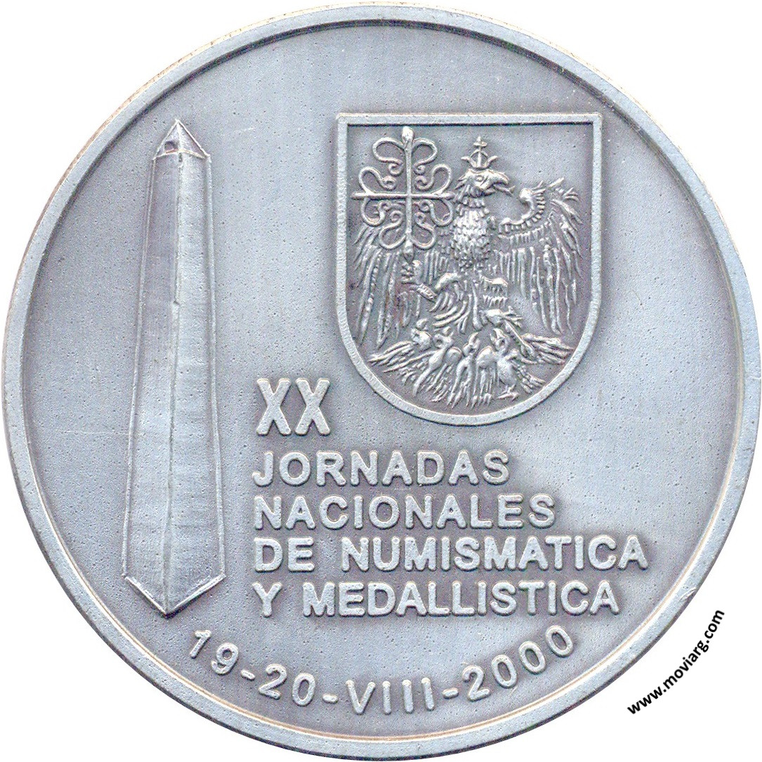 Anverso: XX / JORNADAS / NACIONALES / DE NUMISMATICA / Y MEDALLISTICA / 19 - 20 - VIII - 2000 Reverso: CENTRO / NUMISMATICO / BUENOS AIRES Referencia: | |