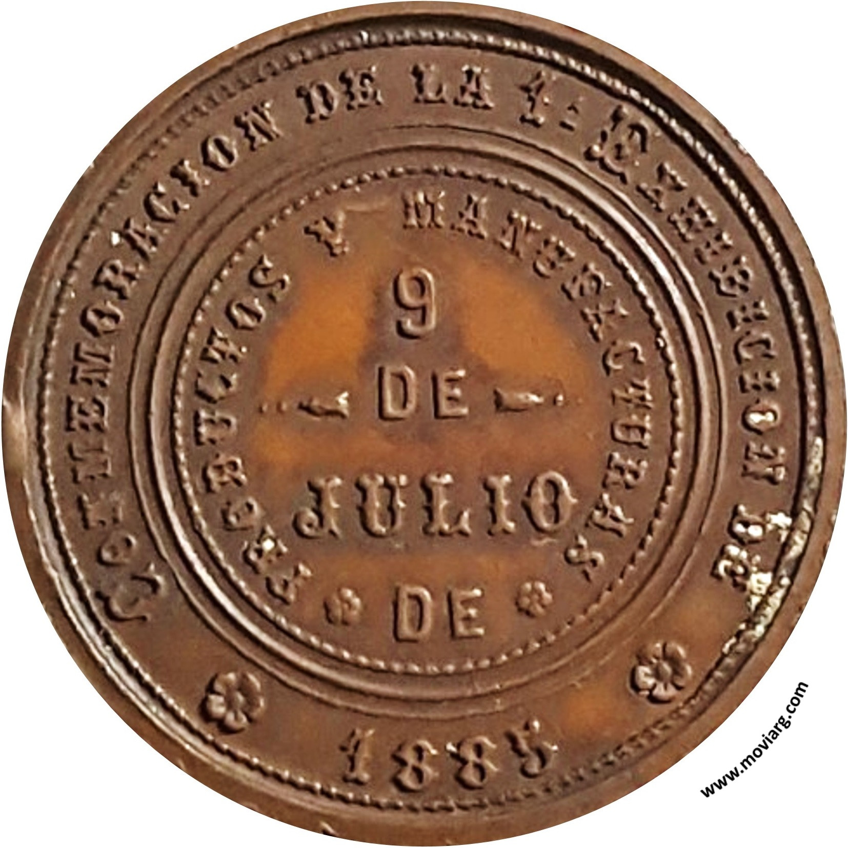 | Año: 1885 Exposiciones Metal: Cobre - Peso: 23.53gr - Módulo: 37.63mm - Espesor: 2.68mm - Rotación: 12hrs Grabador: Podestá y Hno. | |