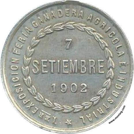 Anverso: SOCIEDAD RURAL SANTAFECINA / ROSARIO Reverso: 1ER. EXPOSICION FERIA GANADERA AGRICOLA É INDUSTRIAL / 7 / SETIEMBRE / 1902 Referencia: | |