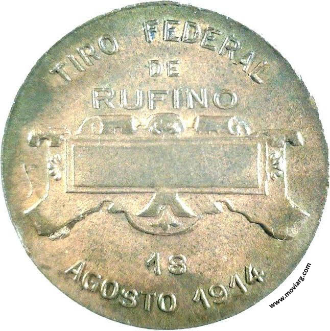 Anverso: PATRIA. Firma: C. Y AF. ROSSI Reverso: TIRO FEDERAL / DE / RUFINO / 18 / AGOSTO 1914 Referencia: | |