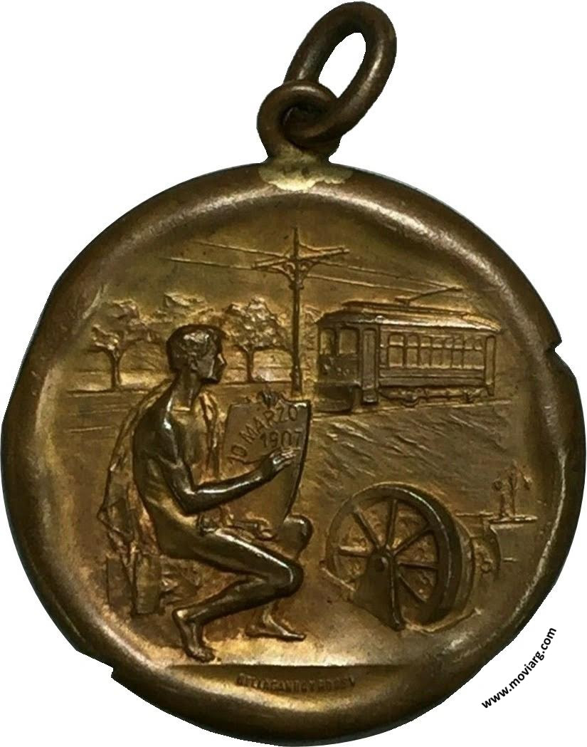 Anverso: Firma: BELLAGAMBA Y ROSSI. Campo: 10 MARZO / 1907 Reverso: LEY N° 4480 / ELECTRIFICACION / COMPAÑIA LACROZE / RECUERDO / Á LA MEMORIA / DE SU FUNDADOR / FEDERICO LACROZE / 1835 - 1899 Referencia: | |