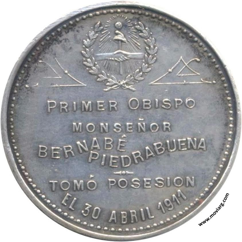 Anverso: OBISPADO DE CATAMARCA / ERECCION 3 DE FEBRERO 1910. Campo: OMNIBUS / DEBITOR / SUM Reverso: PRIMER OBISPO / MONSEÑOR / BERNABÉ / PIEDRABUENA / TOMÓ POSESION / EL 30 ABRIL 1911 Referencia: | |