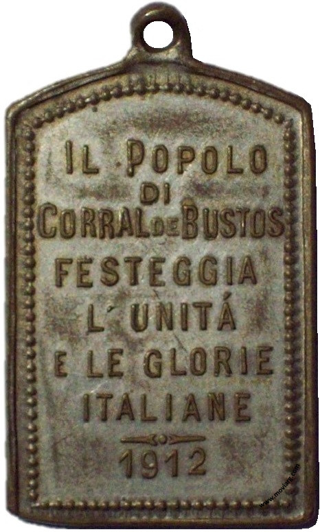 Anverso: ROMA INTANGIBILE / XX SETTEMBRE 1870 Reverso: IL POPOLO / DI / CORRAL DE BUSTOS / FESTEGGIA / L' UNITÁ / E LE GLORIE / ITALIANE / 1912 Referencia: | |