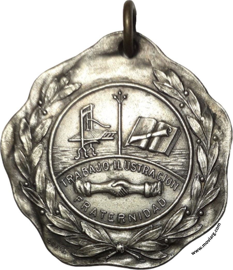 Colección MDS Anverso: TRABAJO ILUSTRACION / FRATERNIDAD. Firma: HORTAReverso: SOCIEDAD TIPOGRÁFICA BONAERENSE / COLOCACION / DE LA / PIEDRA FUNDAMENTAL / PADRINOS / EMMA G. DE BARNETCHE / DELFOR DEL VALLE / 23 - JULIO - 1922 Referencia: | |