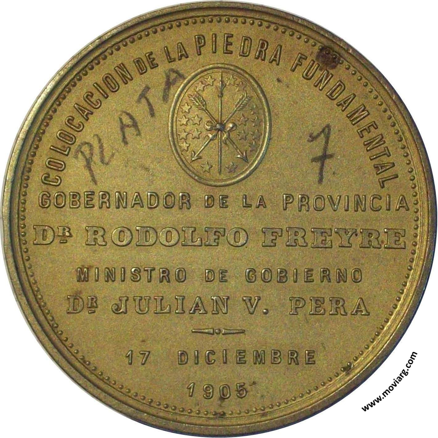 Anverso: ESCUELA INDUSTRIAL / SANTA FÉ. Firma: J. GOTTUZZO Reverso: COLOCACION DE LA PIEDRA FUNDAMENTAL / GOBERNADOR DE LA PROVINCIA / DR. RODOLFO FREYRE / MINISTRO DE GOBIERNO / DR. JULIAN V. PERA / 17 DICIEMBRE / 1905 Referencia: | |