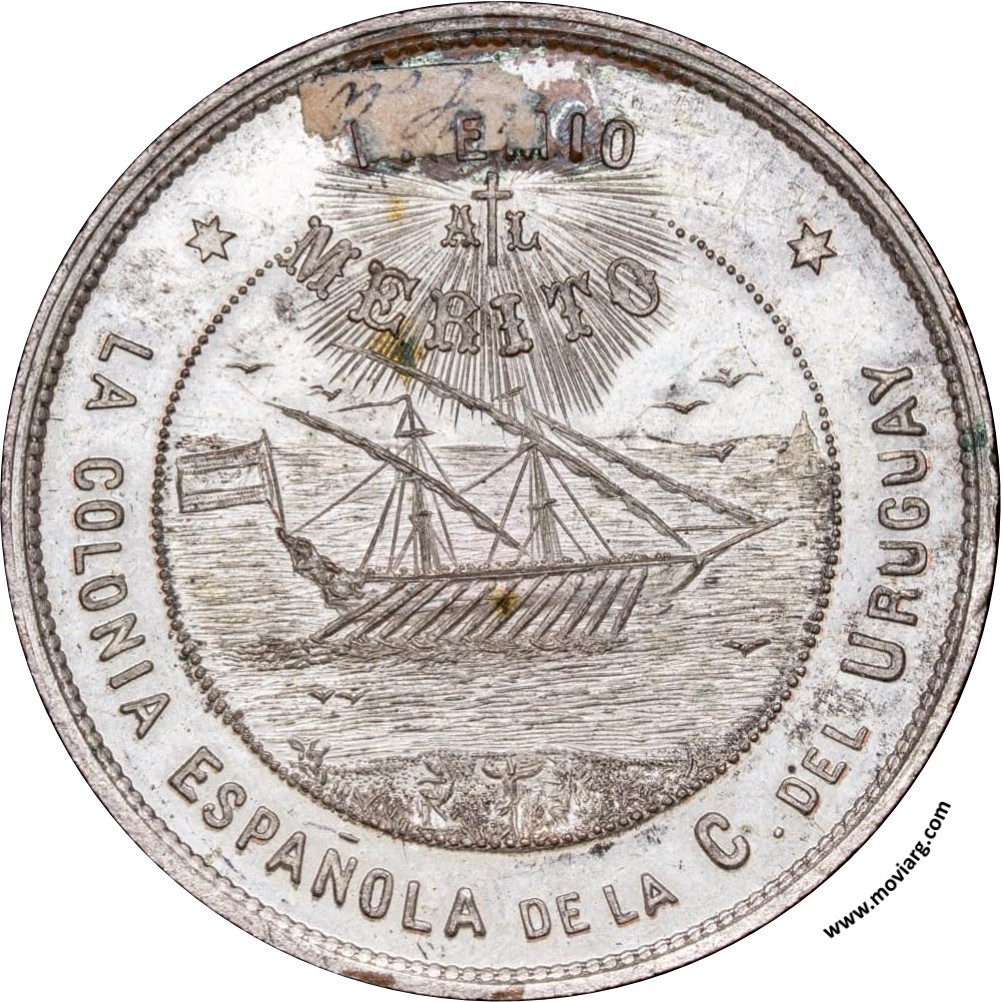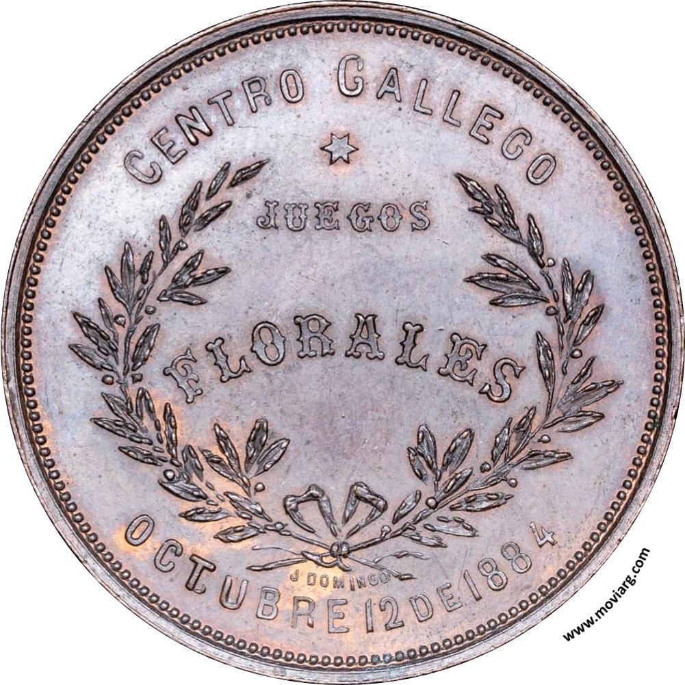 Anverso: PREMIO / AL / MERITO / LA COLONIA ESPAÑOLA DE LA C. DEL URUGUAY Reverso: CENTRO GALLEGO / JUEGOS / FLORALES / OCTUBRE 12 DE 1884. Firma: J. DOMINGO Referencia: | |
