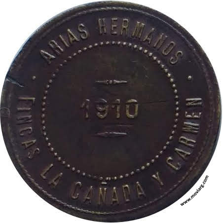 Anverso: ARIAS HERMANOS / FINCAS LA CAÑADA Y CARMEN / 1910 Reverso: 100 Referencia: | |