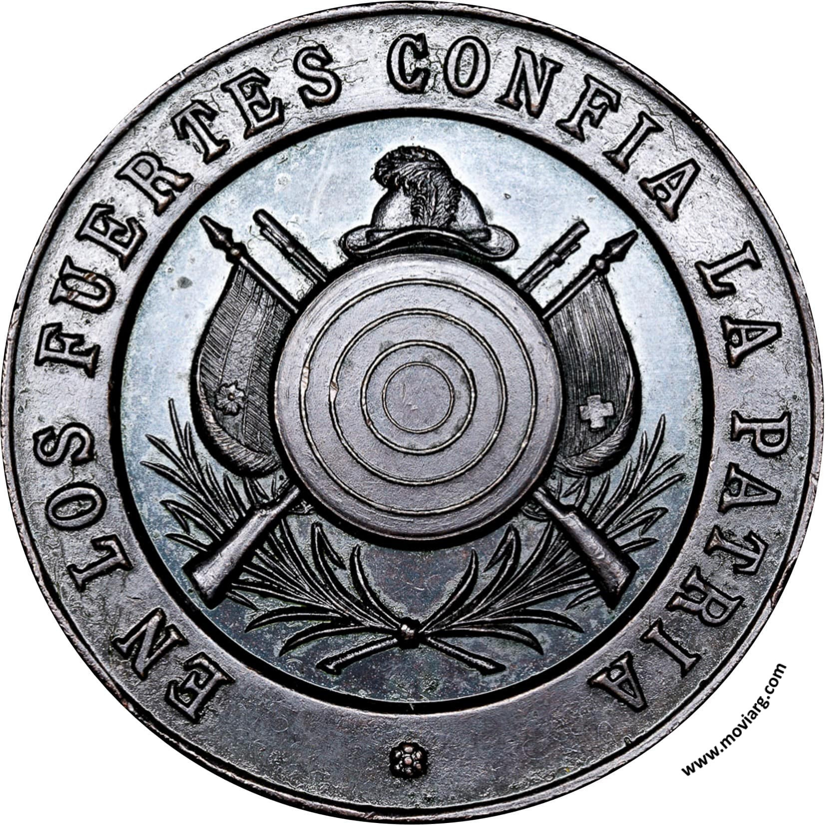 Anverso: EN LOS FUERTES CONFIA LA PATRIA Reverso: SOCIEDAD DE TIRO SUIZO / TUCUMAN / PREMIO / AL / MERITO. Firma: R.G. Referencia: | |