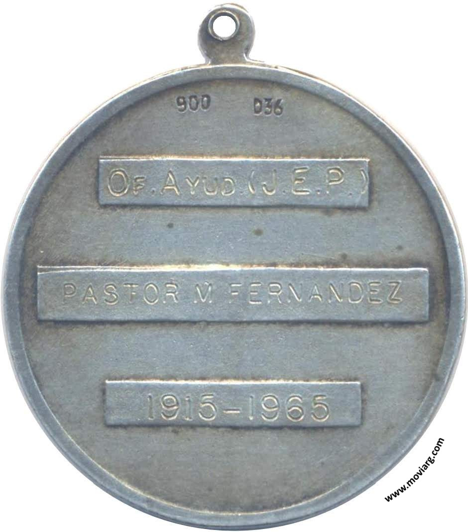 Anverso: BODAS DE ORO CON LA / POLICIA FEDERAL ARGENTINA Reverso: [ OF. AYUD. (J.E.P.) ] / [ PASTOR M. FERNANDEZ ] / [ 1915 - 1965 ]. Exergo: [ 900 ] [ 036 ] Referencia: | |