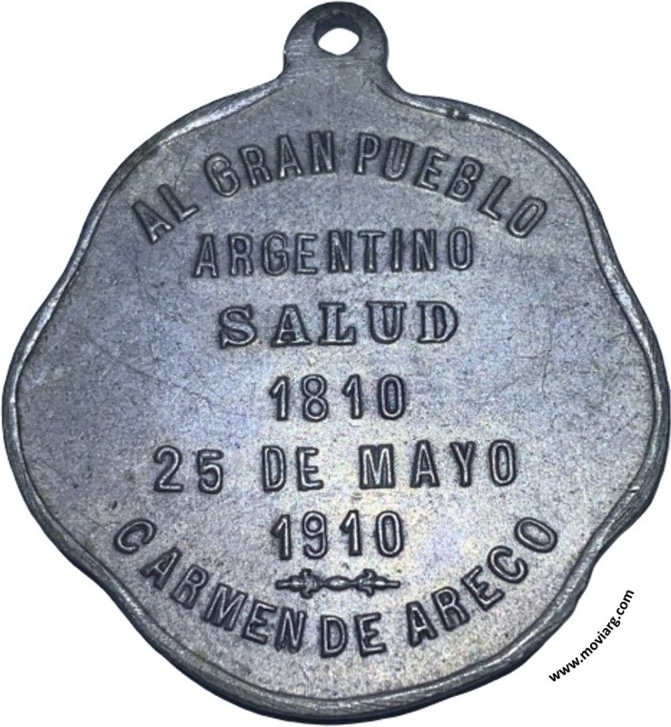 Colección Magnin Anverso: Firma: C. Y AF. ROSSIReverso: AL GRAN PUEBLO / ARGENTINO / SALUD / 1810 / 25 DE MAYO / 1910 / CARMEN DE ARECO Referencia: | |