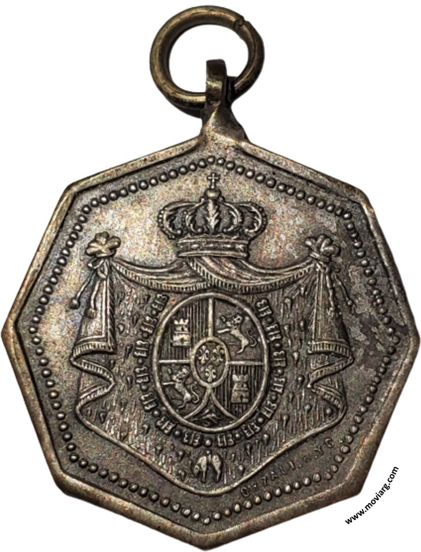 | Año: 1906 Romerías Metal: Plateado - Peso: 7.91gr - Módulo: 28.54x33.85mm - Espesor: 2.05mm - Rotación: 12hrs Grabador: Ignacio Orzali, José Bellagamba y Constante Rossi | |