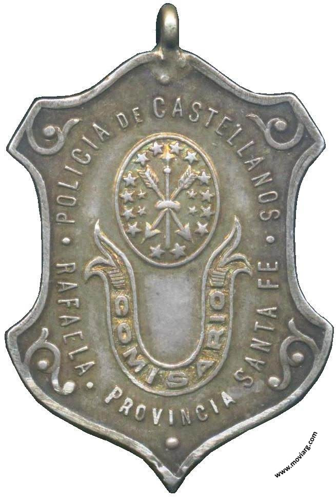 Anverso: POLICIA DE CASTELLANOS / RAFAELA / PROVINCIA SANTA FE. Campo: COMISARIO Reverso: Referencia: | |