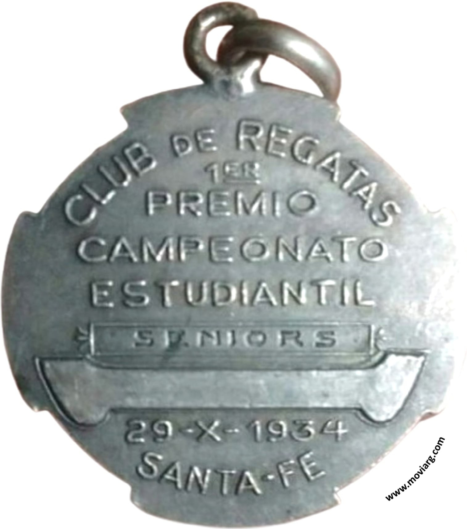 Anverso: C. / R. / S. / F. (Club Regatas Santa Fe) Reverso: CLUB DE REGATAS / 1ER. / PREMIO / CAMPEONATO / ESTUDIANTIL / [ SENIORS ] / 29 - X - 1934 / SANTA - FE Referencia: | |