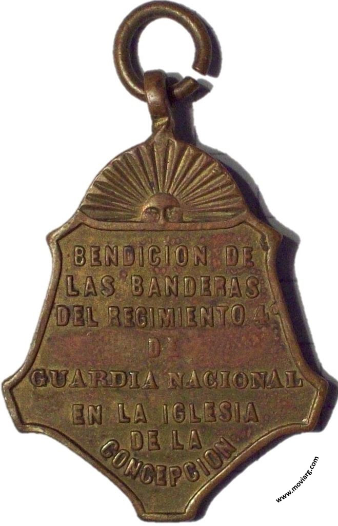 Anverso: 22 SETIEMBRE 1895 / BUENOS AIRES. Firma: ORZALI B. Y C. Reverso: BENDICION DE / LAS BANDERAS / DEL REGIMIENTO 4° / DE / GUARDIA NACIONAL / EN LA IGLESIA / DE LA / CONCEPCION Referencia: | |