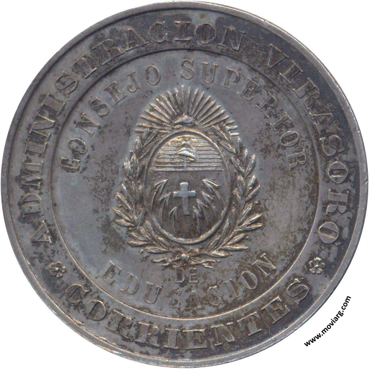 Anverso: ADMINISTRACION VIRASORO / CORRIENTES. CONSEJO SUPERIOR / DE / EDUCACION Reverso: EDIFICIO ESCOLAR EN LA PLAZA 25 DE MAYO / INAUGURACION / MARZO 1896 Referencia: | |
