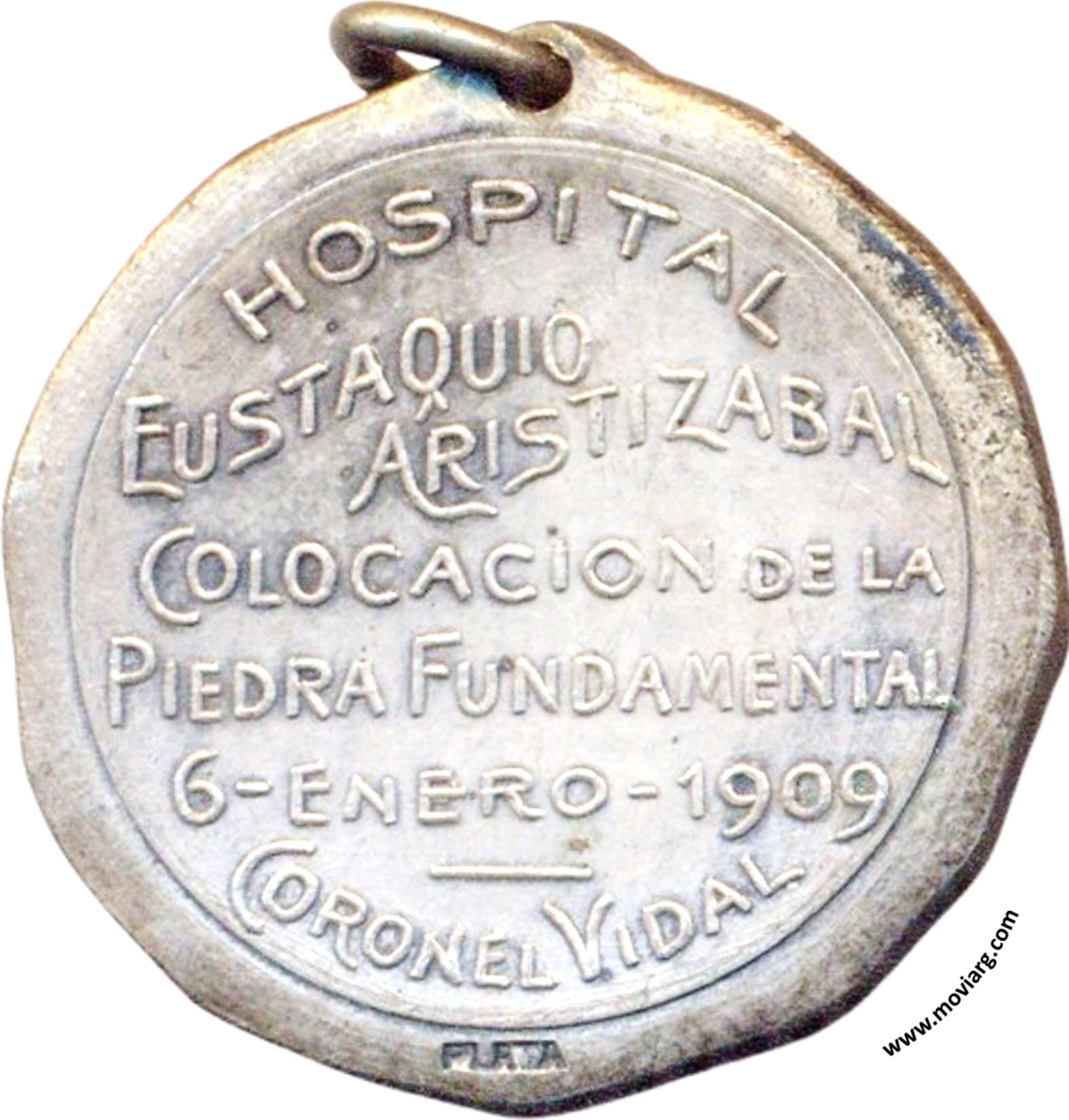 Anverso: CHARITAS Reverso: HOSPITAL / EUSTAQUIO / ARISTIZABAL / COLOCACION DE LA / PIEDRA FUNDAMENTAL / 6 - ENERO - 1909 / CORONEL VIDAL Referencia: | |