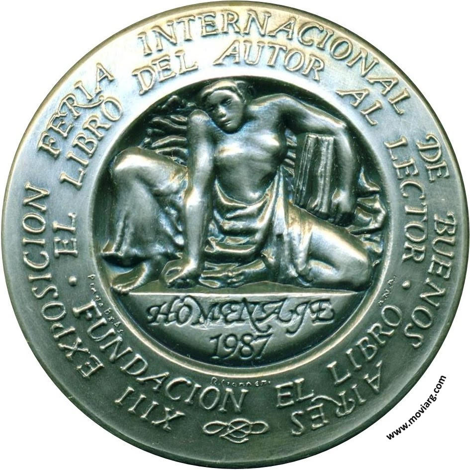 Anverso: JORGE LUIS / BORGES. Firma: R. GIANNETTI Reverso: XIII EXPOSICION FERIA INTERNACIONAL DE BUENOS AIRES / EL LIBRO DEL AUTOR AL LECTOR / FUNDACION EL LIBRO. Campo: HOMENAJE / 1987. Firma: PIANA BS. AS. / R. GIANNETTI / A.N.A. Referencia: | |