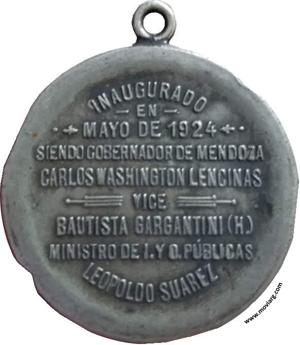 Anverso: HOSPITAL JOSÉ NESTOR LENCINAS / LEY N° 745. Firma: CONST. ROSSI Reverso: INAUGURADO / EN / MAYO DE 1924 / SIENDO GOBERNADOR DE MENDOZA / CARLOS WASHINGTON LENCINAS / VICE / BAUTISTA GARGANTINI (H.) / MINISTRO DE I. Y O. PÚBLICAS / LEOPOLDO SUAREZ Referencia: | |