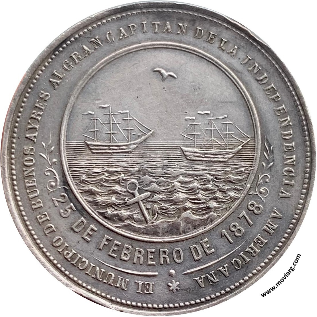 Anverso: EL PUEBLO AGRADECIDO AL LIBERTADOR DN. JOSE DE SAN MARTIN EN SU CENTENARIO Reverso: EL MUNICIPIO DE BUENOS AYRES AL GRAN CAPITAN DE LA INDEPENDENCIA AMERICANA / 25 DE FEBRERO DE 1878 Referencia: | |