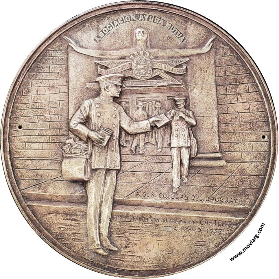 Anverso: ASOCIACIÓN AYUDA MUTUA / A SUS COLEGAS DEL URUGUAY / EN EL VI ANIVERSARIO DEL DIA DEL CARTERO / BS. AS. 27 - 10 - 1935. Firma: A. LELEU Reverso: Referencia: | |