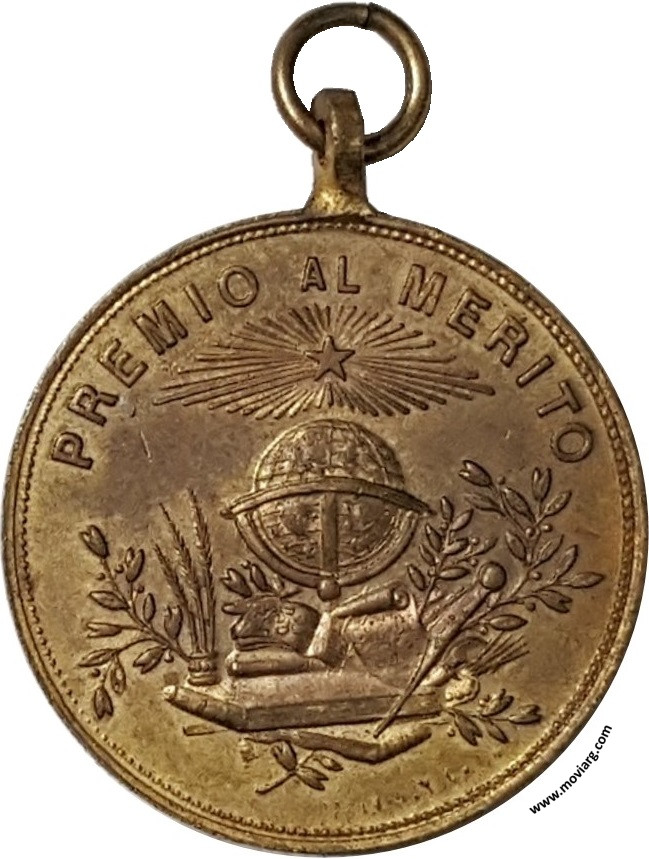 | Año: (1898) Premio al Mérito y Aplicación Metal: Bronce - Peso: 11.4gr - Módulo: 30mm - Rotación: 12hrs Grabador: Ignacio Orzali, José Bellagamba y Constante Rossi | |