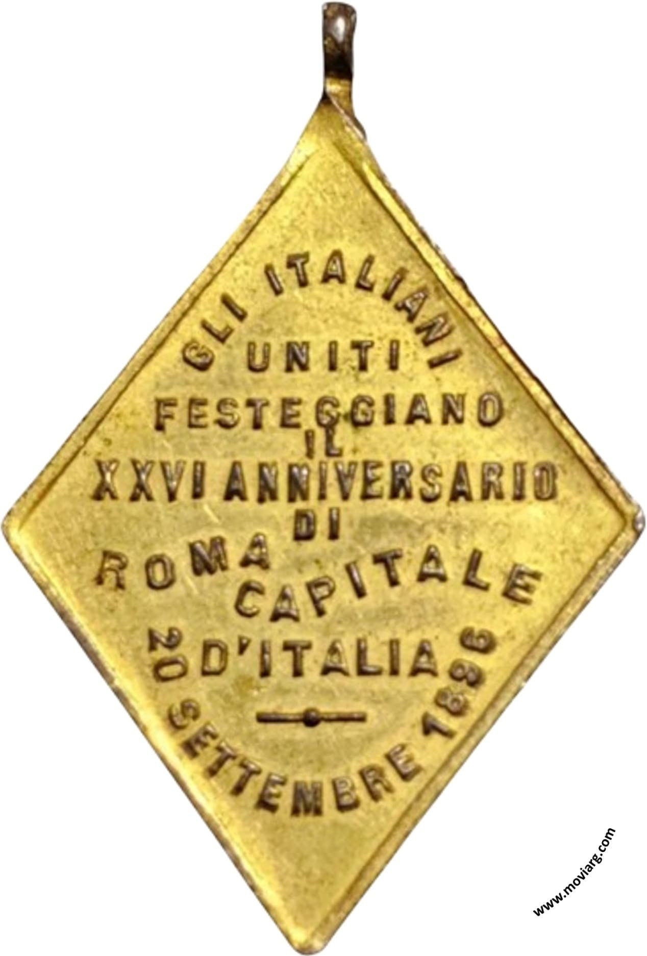 Anverso: Reverso: GLI ITALIANI / UNITI / FESTEGGIANO / IL / XXVI ANNIVERSARIO / DI / ROMA / CAPITALE / D'ITALIA / 20 SETTEMBRE 1896 Referencia: | |