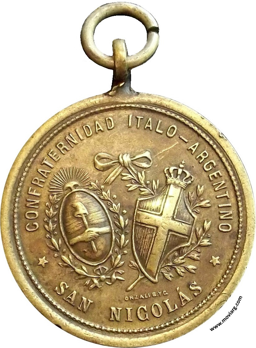 Anverso: CONFRATERNIDAD ITALO - ARGENTINO / SAN NICOLÁS. Firma: ORZALI B. Y C. Reverso: ANIVERSARIO / XX SETIEMBRE 1898 Referencia: | |