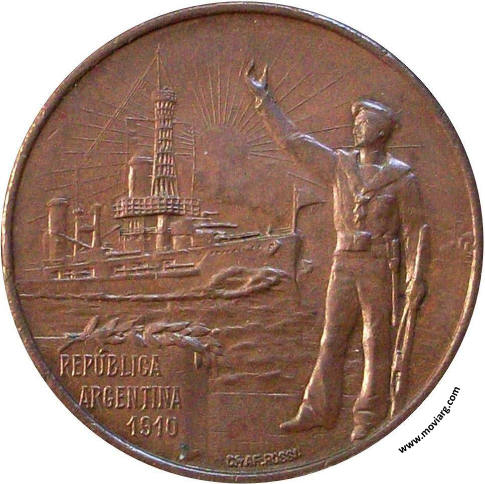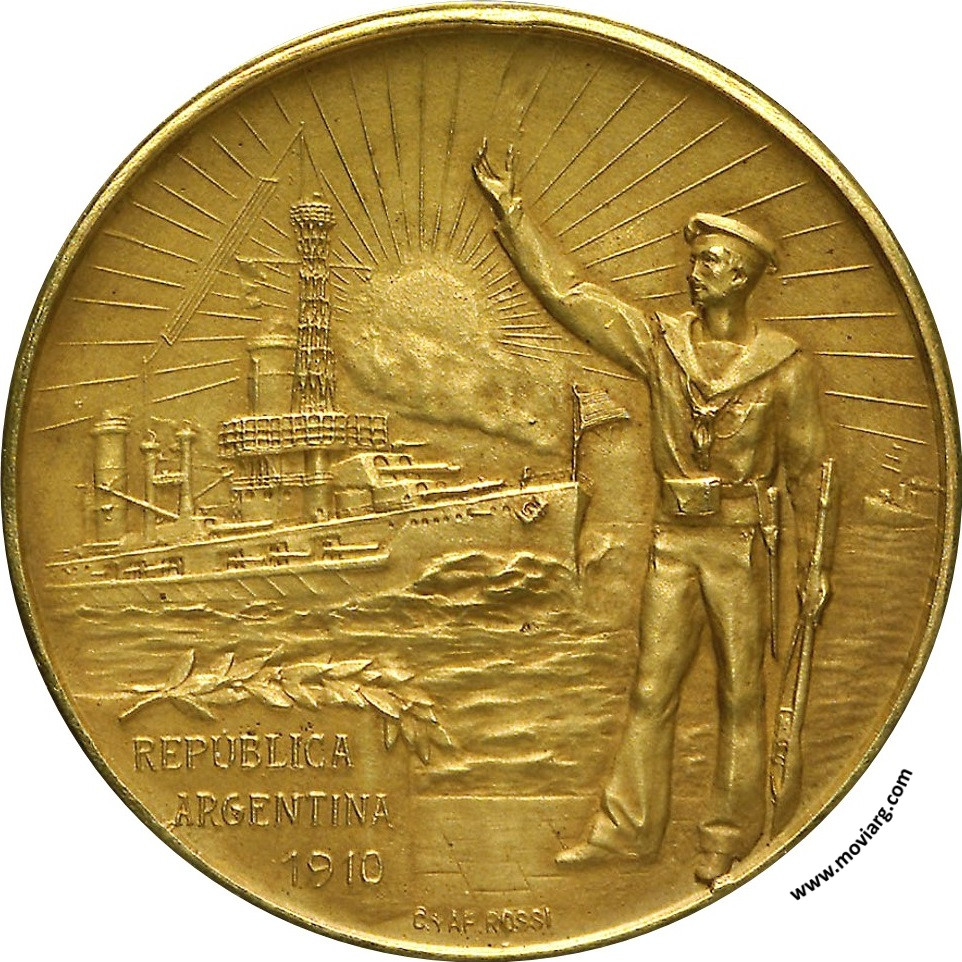 National Maritime Museum, Greenwich, London Anverso: 1810Reverso: REPUBLICA / ARGENTINA / 1910. Firma: C. Y AF. ROSSI Canto: Humberto Burzio: "Buenos Aires en la medalla" 1981 p262. Referencia: BURZIO-764 | |