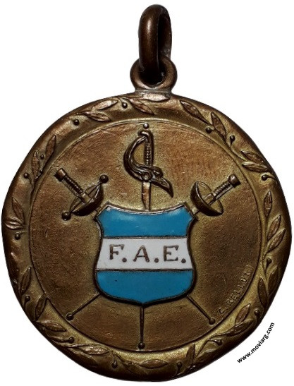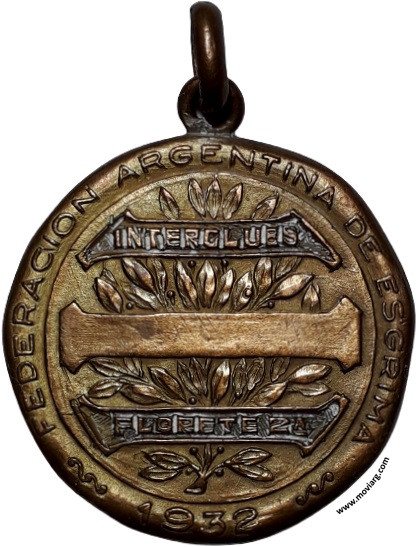 Colección MDS Anverso: Campo: F.A.E. Firma: C. BELLUNIReverso: FEDERACION ARGENTINA DE ESGRIMA / [ INTERCLUBS ] / [ FLORETE 2A. ] / 1932 Referencia: | |